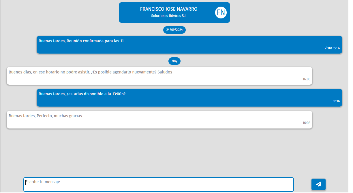 Comunicación vía chat de forma vertical entre los mandos intermedios y RRHH o empleados del equipo. Agiliza la comunicación en los temas que surgen en el día a día y no permiten «esperas», como puede ser un retraso en la entrada o una urgencia puntal.