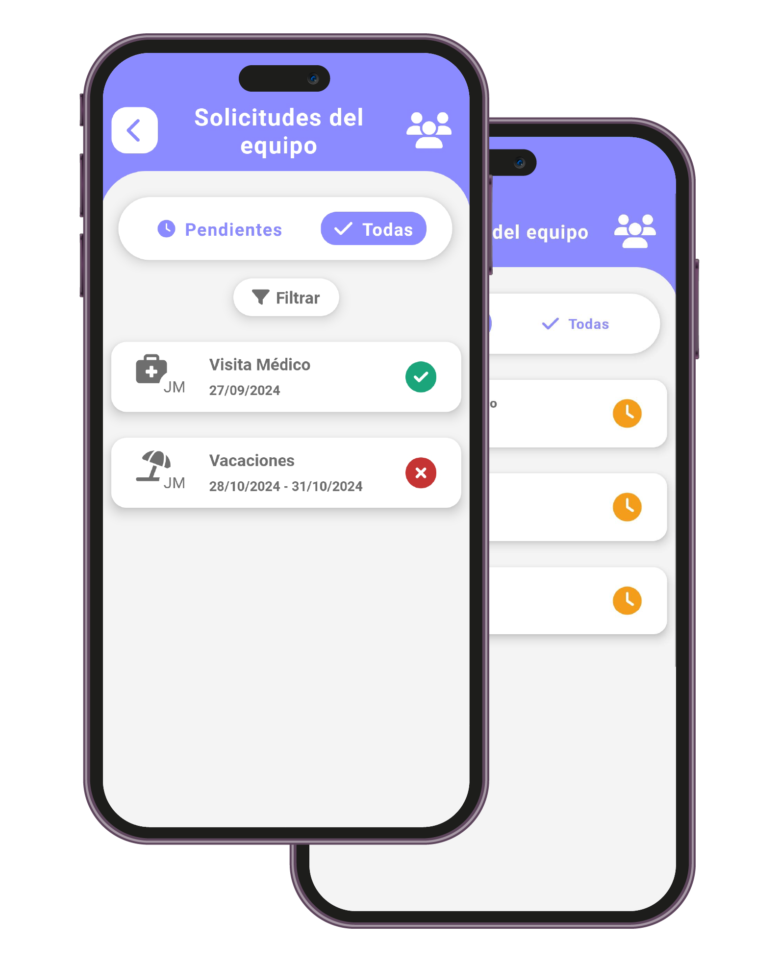Administra y aprueba todas las solicitudes del equipo de manera ágil directamente desde la app, de modo que ahorres tiempo y simplifiques la gestión con un proceso centralizado y eficiente.